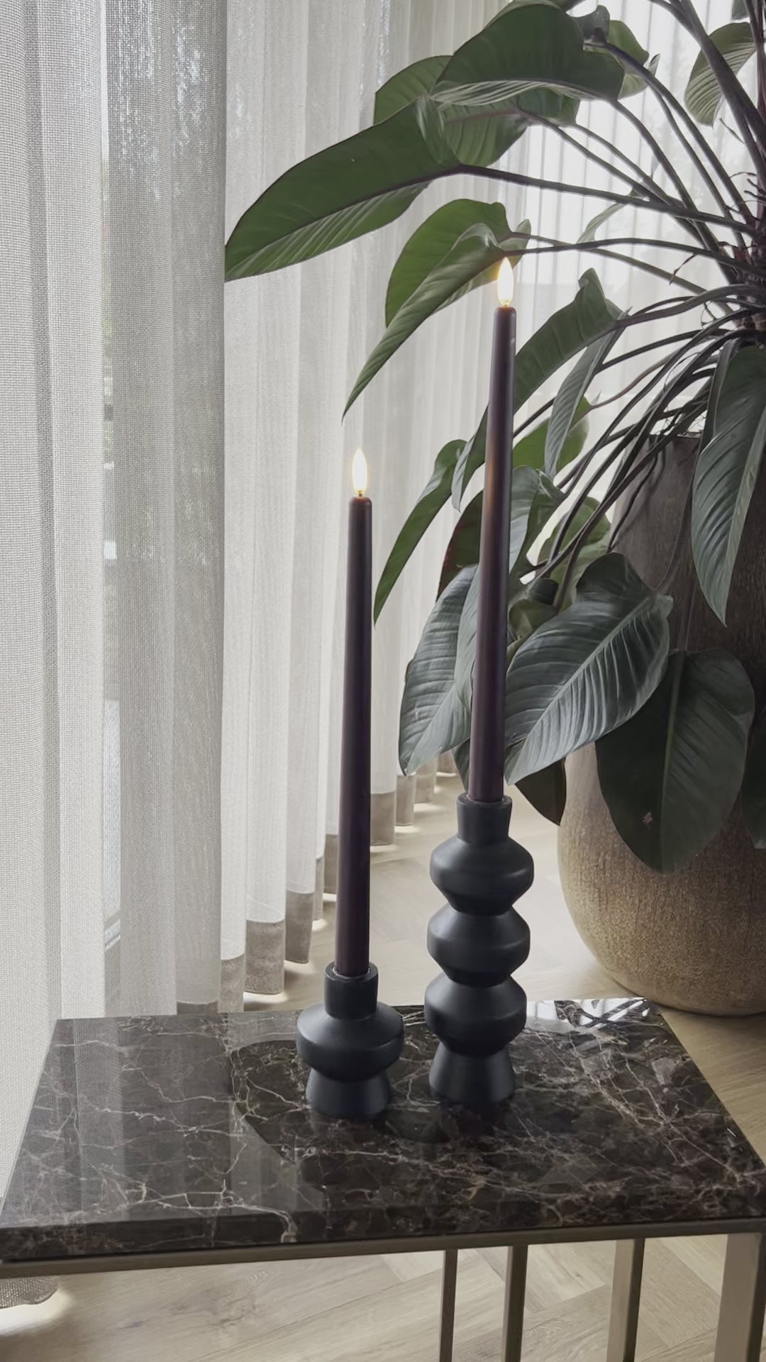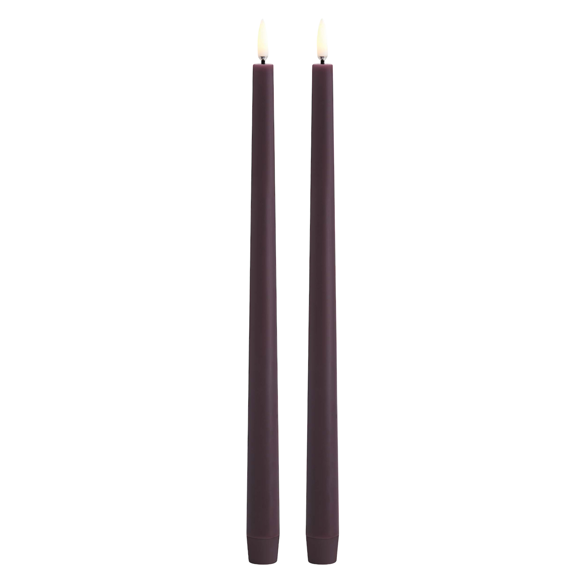 These beautiful plum LED candles are made of real wax and are therefore actually real candles without a flame. So they also feel the same. The candle has a round flame with an attractive 'flickering' light in warm white. The lights have a real flame effect. These LED candles provide a safe feeling. This way you never have to pay attention again when the candles are lit near children or pets. This way you bring the coziness and peace back into your home. You can relax without sacrificing quality and atmosphere. We also have the battery-powered dinner candles in other colors and models in our webshop.