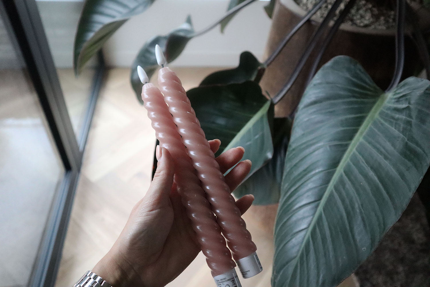 Swirl LED dinner candles | Pink